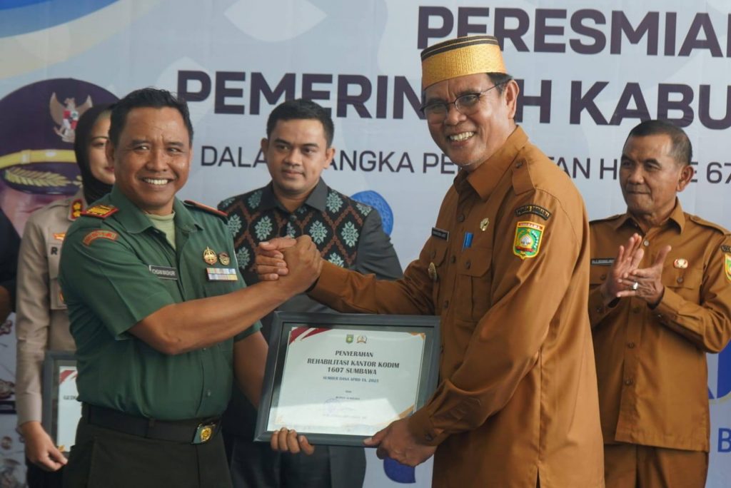 Rehab atau Penataan Bangunan Gedung Pengadilan Negeri Sumbawa, 4.Rehab atau Penataan Gedung Kodim 1607 Sumbawa.Pada kesempatan tersebut i Asisten 2 berharap kita bersama-sama menjaga kondusifitas daerah dan membangkitkan rasa kepemilikan kita terhadap hasil-hasil proyek, hasil kegiatan dan kita pelihara bersama untuk kemakmuran kita bersama.”tutupnya.Dilanjutkan dengan penandatanganan prasasti bangunan gedung dan penyerahan rehabilitasi kantor dan rumah dinas serta gedung sentra pelayanan Kepolisian oleh Bupati Sumbawa.