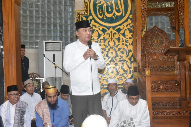 Sumbawa, rumahinformasisamawa wakil Bupati Sumbawa, Hj. Dewi Noviany, S.Pd., M.Pd., hadiri Tarhib Ramadhan 1446 H/ 2025 M bersama Kh. Fikri Haikal Zainuddin MZ. Kegiatan ini berlangsung di Masjid Agung Nurul Huda Sumbawa pada Senin, (17/2/2025). Hadir juga Asisten Pemerintahan dan Kesejahteraan Rakyat Kabupaten Sumbawa, Asisten Administrasi Umum Kabupaten Sumbawa, OPD terkait, Serta para jamaah sholat Isa.